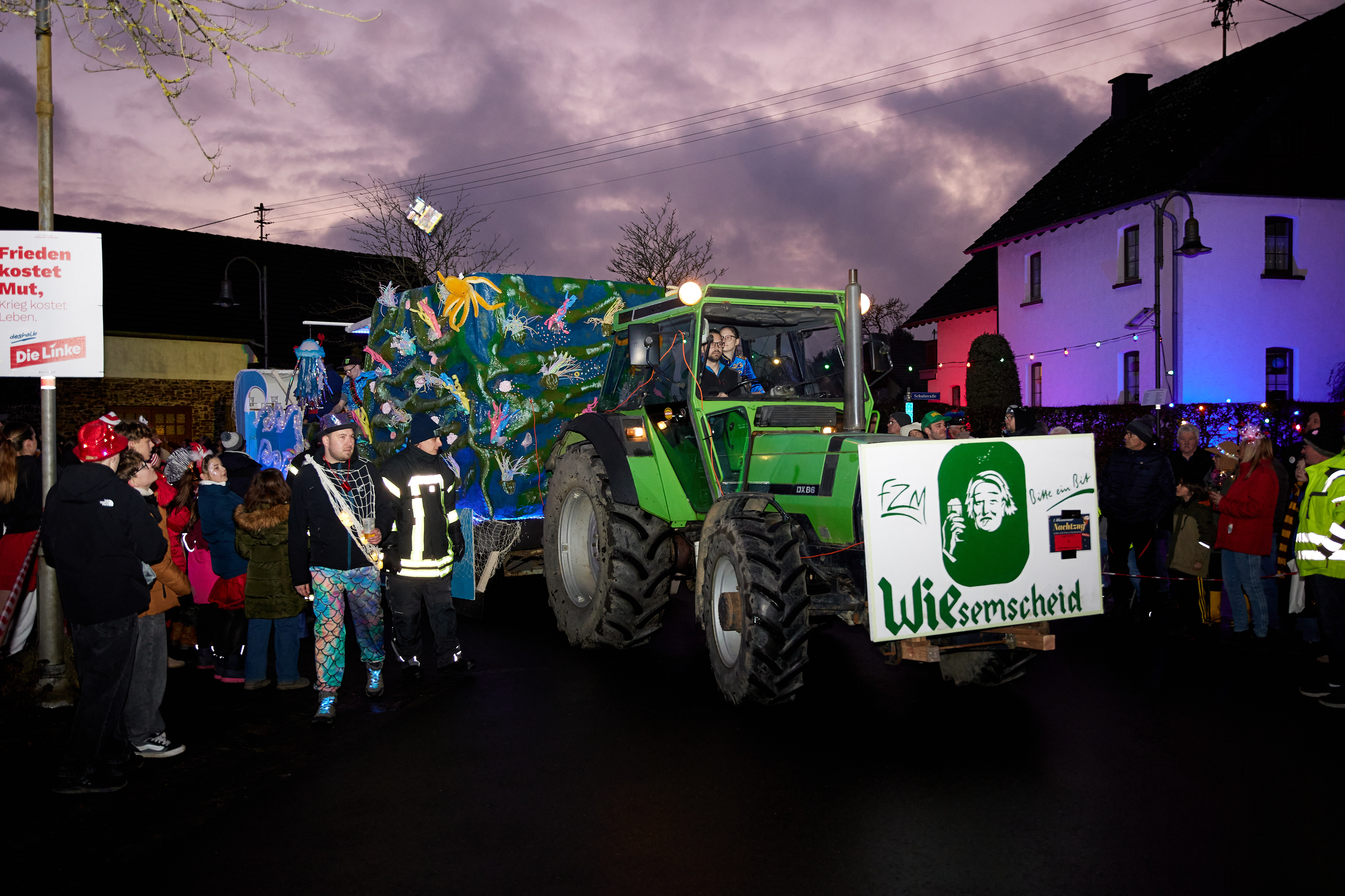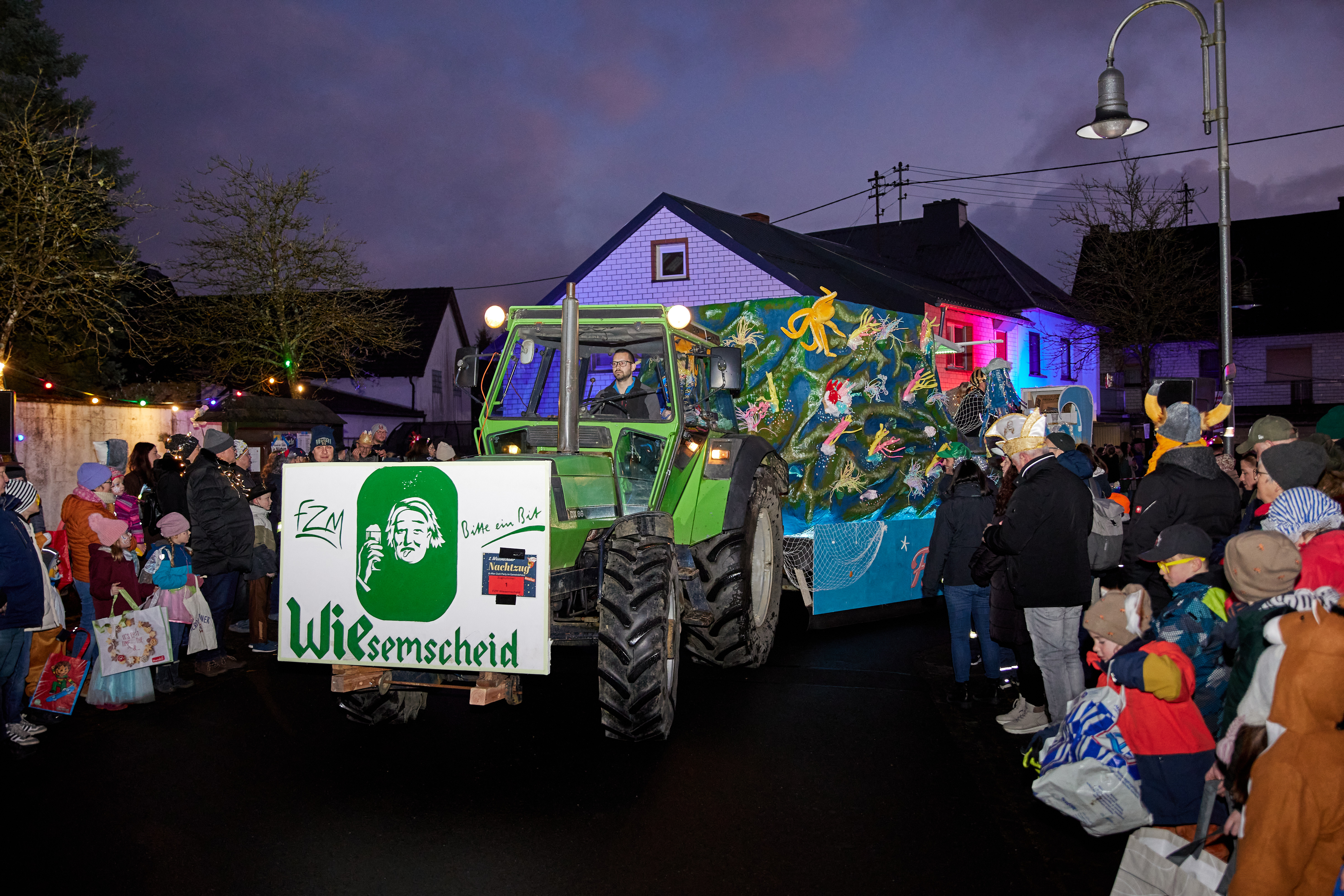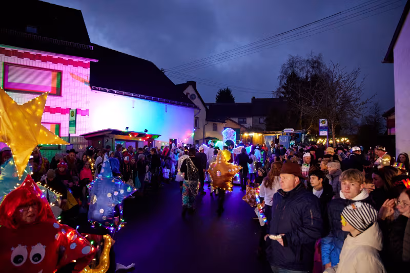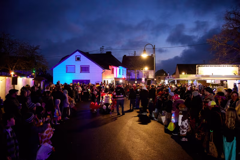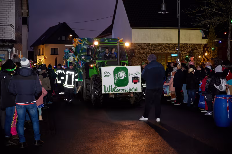 Besonders stolz sind wir auf unseren jährlichen Nachtumzug, der eine ganz besondere Atmosphäre schafft: Im Glanz bunter Lichter und Laternen wird Wiesemscheid in ein magisches Licht getaucht. Besucher und Teilnehmer erleben dabei ein einzigartiges Spektakel, das durch seine familiäre Atmosphäre und Herzlichkeit besticht.