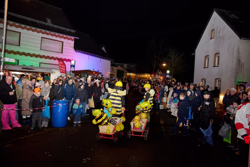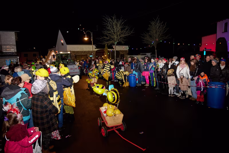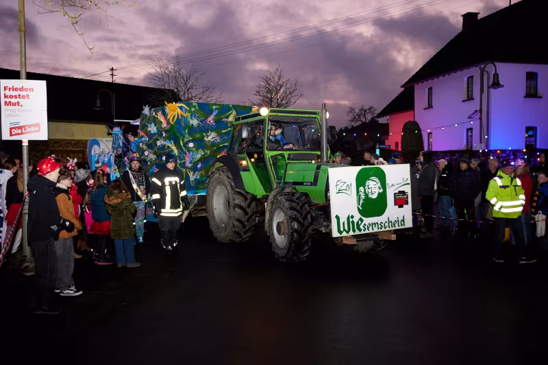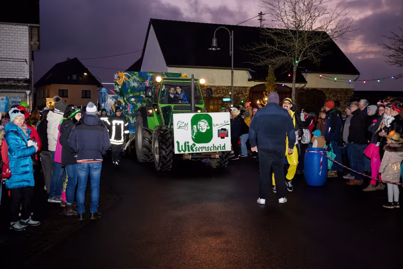 Den Höhepunkt des närrischen Treibens bildet unser traditioneller Karnevalsumzug, der weit über die Ortsgrenzen hinaus bekannt und beliebt ist. Farbenfrohe Kostüme, kreativ gestaltete Festwagen und ausgelassene Musik sorgen für beste Stimmung in den Straßen von Wiesemscheid. Jung und Alt feiern gemeinsam und lassen den Alltag für ein paar Stunden hinter sich.